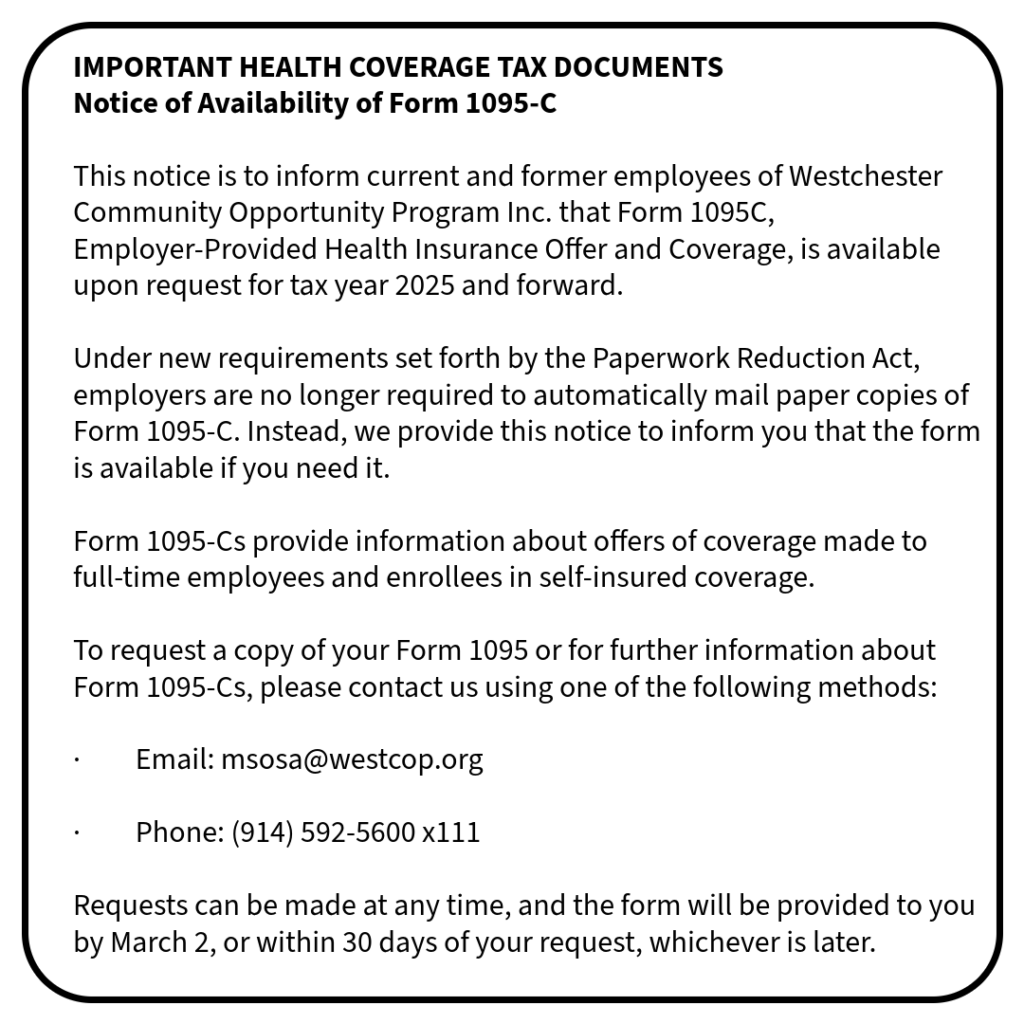 Helping People-Changing LivesWelcome to the Charitable World of WestCOP!Westchester Community Opportunity Program is a private, not-for-profit, multi-purpose social services organization, having proudly operated community programs combating poverty and its adverse effects in the Hudson Valley for over 50 years. Our Mission is to mobilize...Continue Reading -